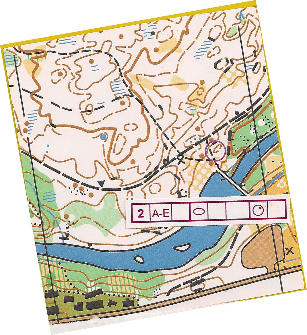 | Slik var tidspostene plassert i terrenget. Fasiten var som følger: B-klassa = A, A&E-klassa(1) = B, A&E-klassa(2) = E |