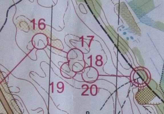 | De fem siste postene av elite-løypa, under O-ringens 4. etappe. |