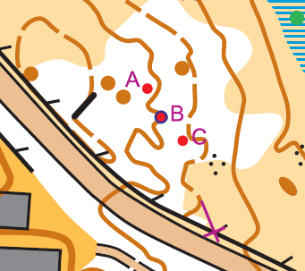 - Meget bra falsk post. Den korrekte formasjonen er gjemt bak andre høyder og det er lett å bli lurt her. Ser man nøyere på kartet skal man imidlertid se at formasjonen posten skal sitte ved er lavere enn de andre og dermed vil være gjemt. Mulig å løse posten ved å se fra siden også.
